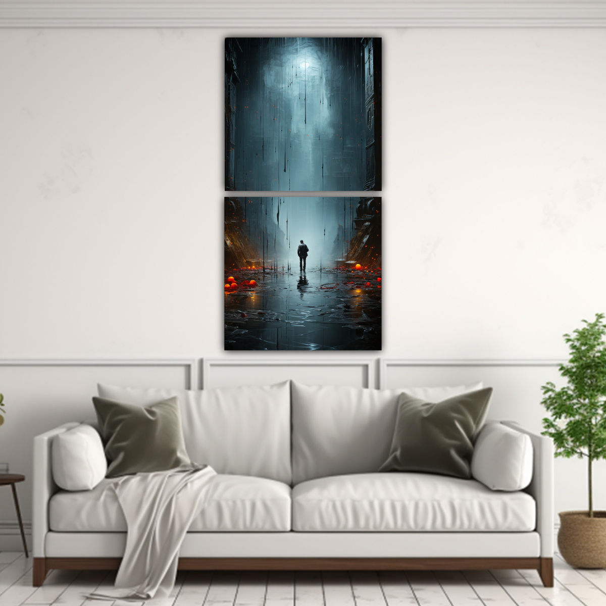 Pinturas Decorativas Abstractas En Perspectiva Cinematográfica Con Concepto De Dos Telas En Bastidor