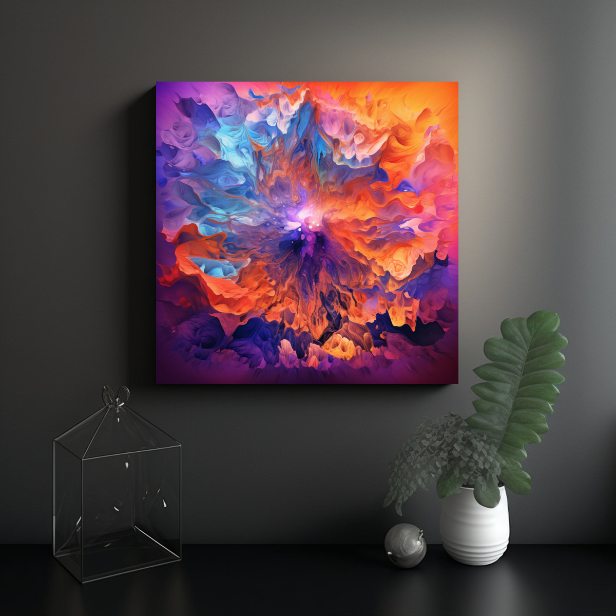 Este cuadro encajaría perfectamente en un ambiente moderno y minimalista, destacando sobre una pared blanca para crear un contraste llamativo Colócalo en el salón o en la oficina para añadir un toque de color y sofisticación a tu espacio