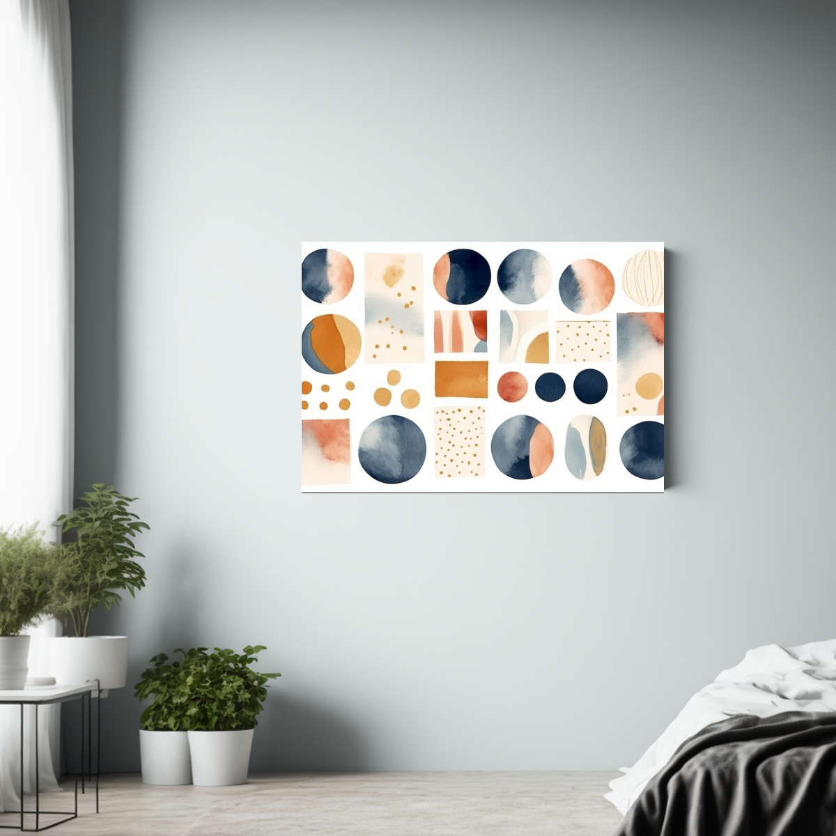 Renueva tu decoración con este hermoso lienzo contemporáneo que combina los colores terracota, azul, naranja y rosa Envíos rápidos y gratuitos en Santiago, ¡aprovecha! Decora tu sala de estar o dormitorio para darle un toque moderno y sofisticado
