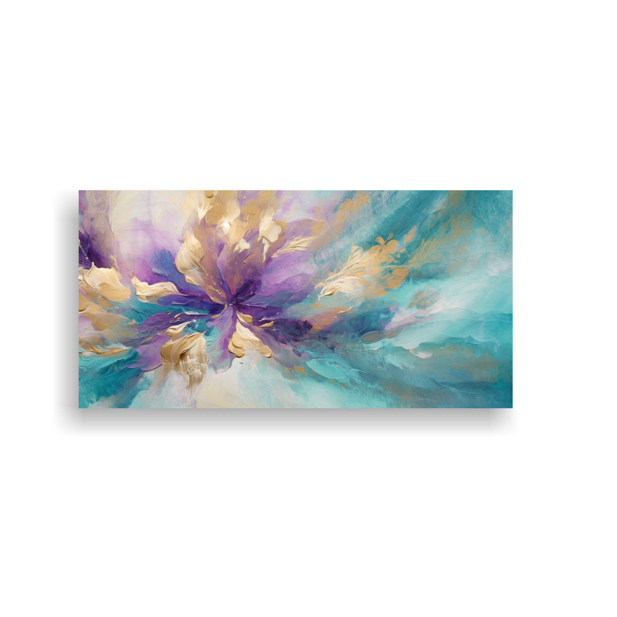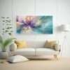 Este cuadro abstracto en tonos turquesa, púrpura y beige es ideal para colocar en la sala de estar sobre un sofá gris claro, creando un contraste elegante y moderno Complementa con cojines en tonos morados y grises para una decoración armoniosa