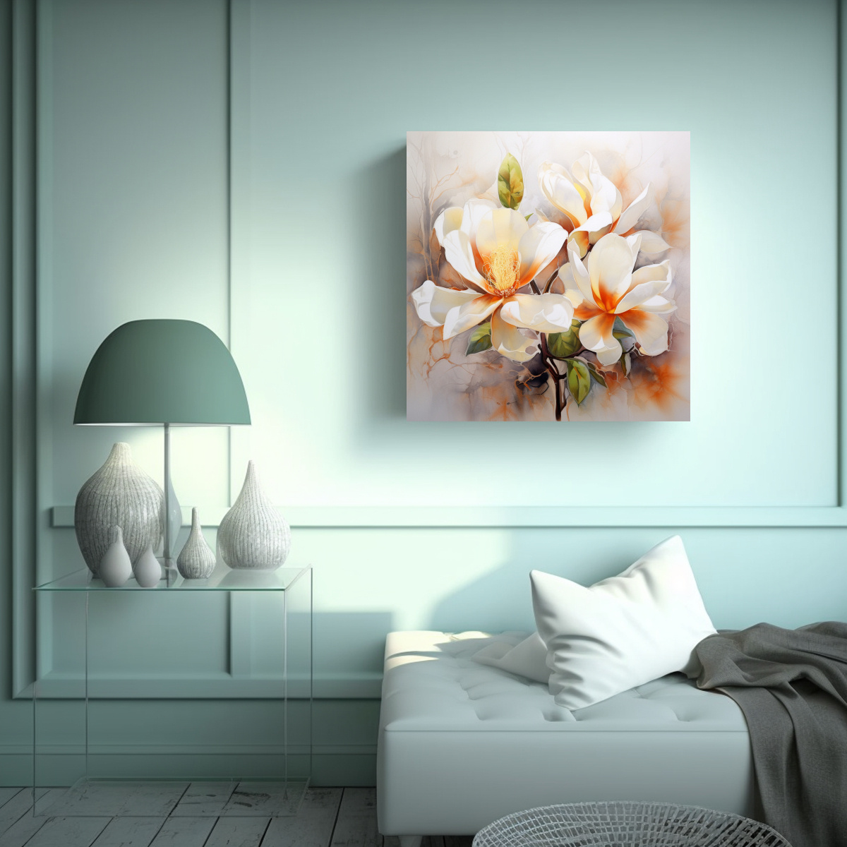 Este cuadro impresionará a tus invitados con su diseño exclusivo y su alta calidad Las magnolias blancas y naranjas le darán un toque sofisticado a cualquier habitación Además, nuestras entregas rápidas y gratuitas en Santiago y envíos express a regiones garantizan que recibirás tu cuadro en poco tiempo