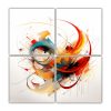 Pinturas Decorativas Abstractas Modernas De Cubismo Alegre En Cuatro Telas En Bastidor Cálido.