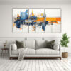Pinturas Decorativas Abstractas Naranja E índigo En Conjunto De 3