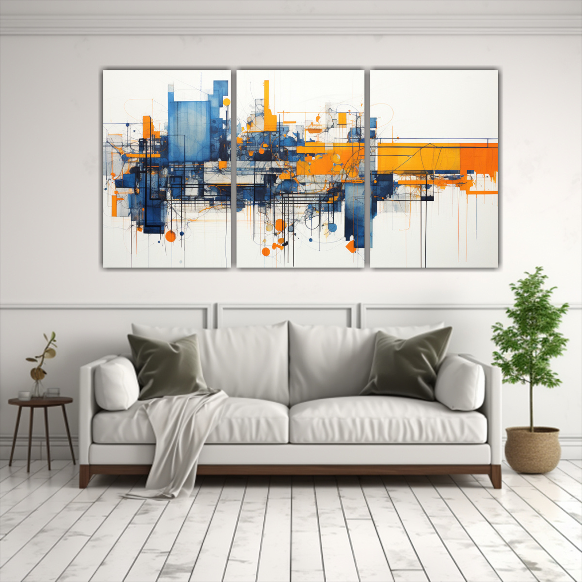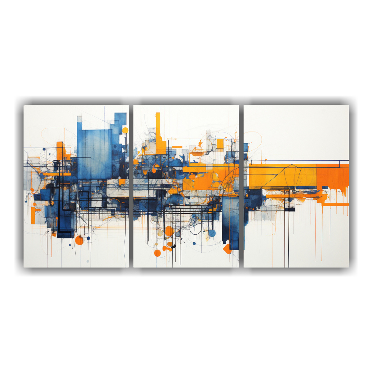 DecoCuadros te ofrece pinturas decorativas abstractas naranja e índigo en conjunto de 3 Nuestros cuadros son impresos en tela de alta calidad con bastidores de madera, lo cual garantiza durabilidad y resistencia Además, contamos con los precios más económicos del mercado y las entregas más rápidas ¡Aprovecha esta oportunidad!