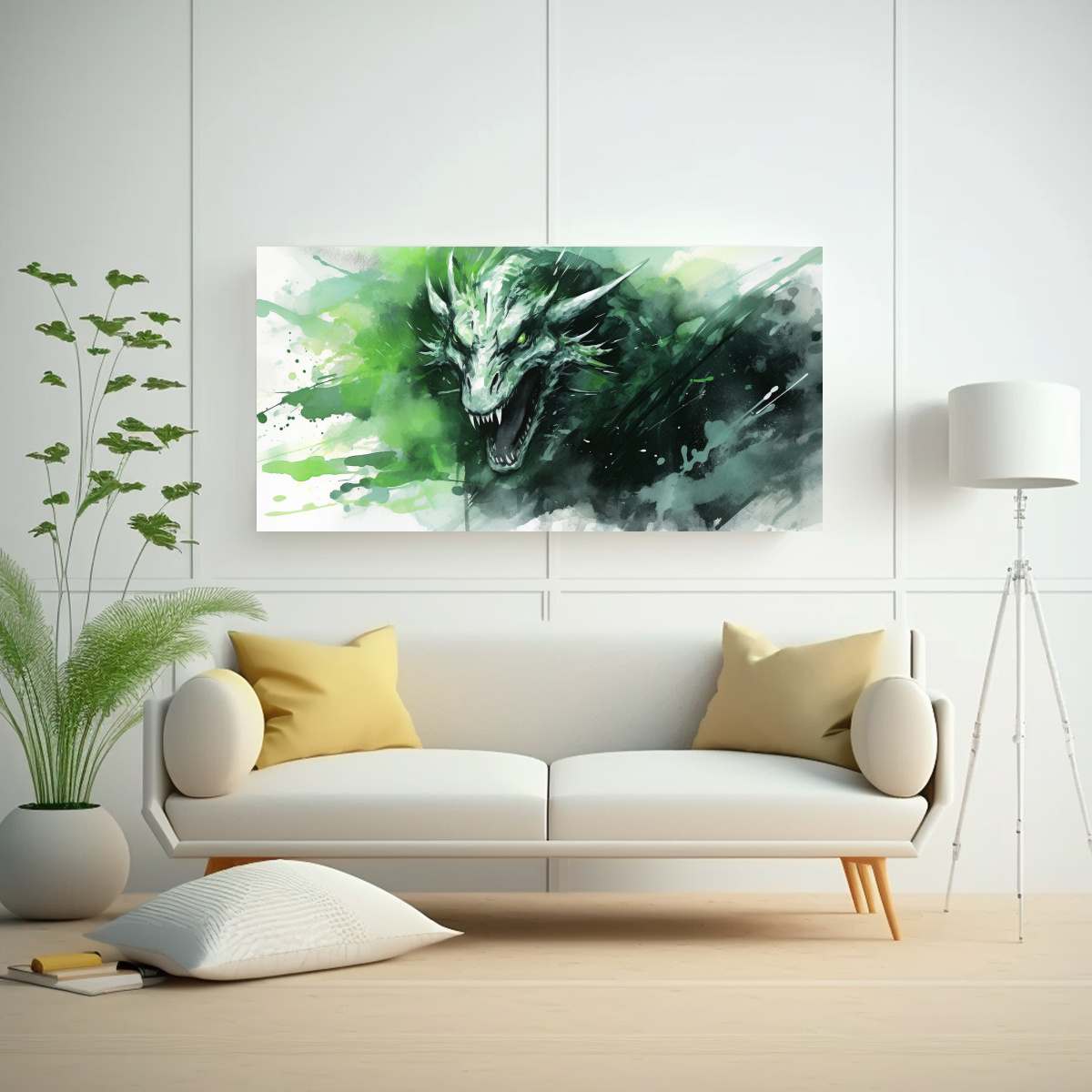 Renueva tu hogar u oficina con esta obra de arte única que combina la fuerza del dragón con la suavidad de las acuarelas Atrévete a decorar tus paredes con un toque de misterio y sofisticación La pintura abstracta Alegría de Dragón en Acuarelas verdes es ideal para espacios modernos y vanguardistas ¡Hazte con ella y transforma tu ambiente!