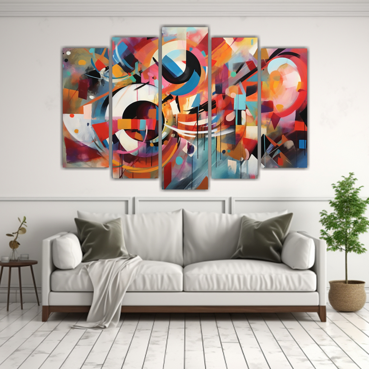 Coloca este políptico vibrante en el centro de tu sala de estar para crear un punto focal llamativo Combínalo con cojines en tonos neutros y una alfombra de pelo largo para un ambiente acogedor y moderno ¡Destaca tu estilo con esta pieza única!