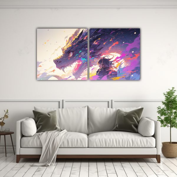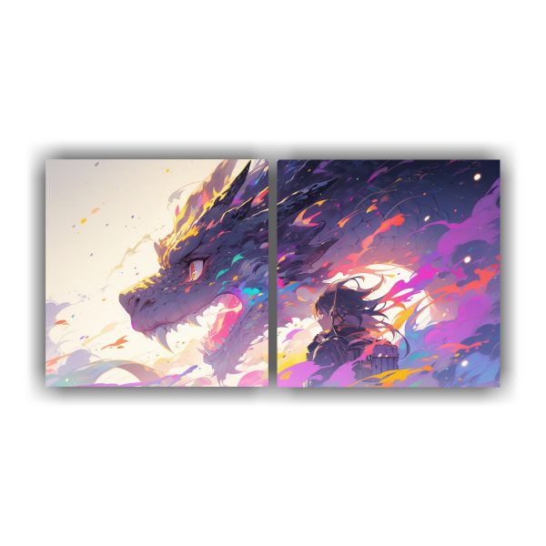 Pinturas Decorativas Actuales: Dragón En Colores Del Arcoíris Y Neonoir.
