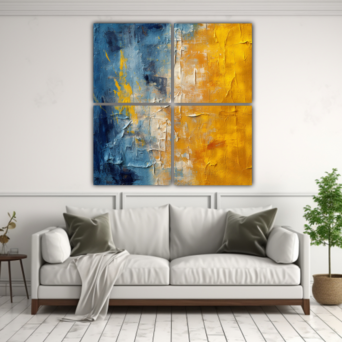 Pinturas Decorativas Azul Y Amarillo Con Textura Suave Para Sala