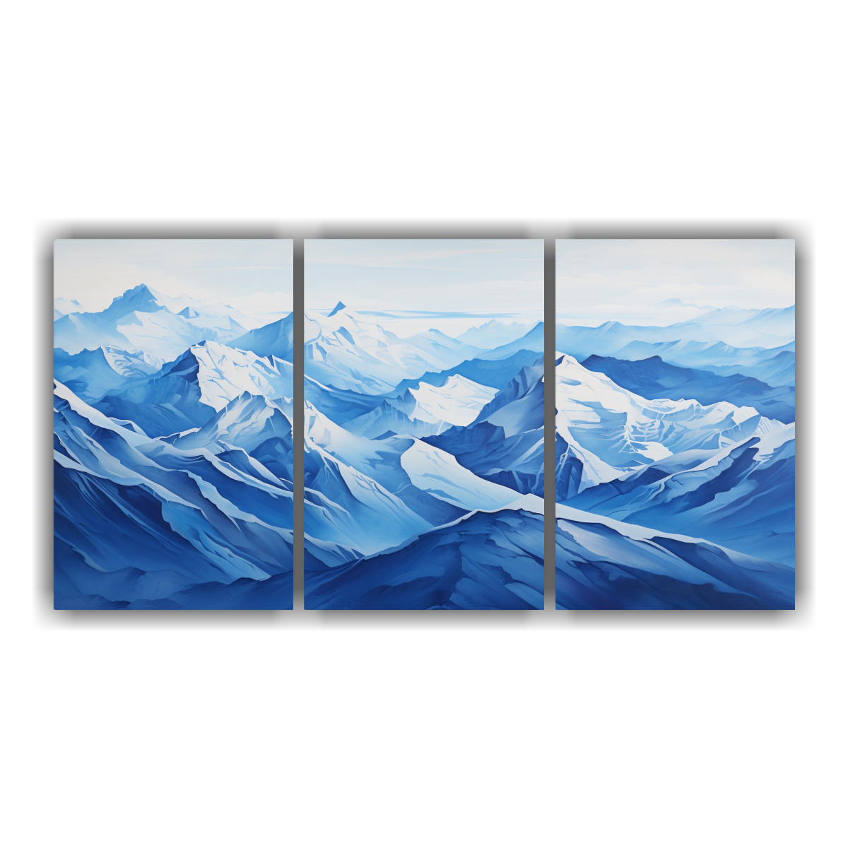 Este cuadro de montañas azules con profundidad sería ideal para colocar en la sala de estar sobre un sofá claro o en el estudio para inspirar creatividad Combínalo con elementos de decoración plateados y textiles en tonos turquesa para un ambiente moderno y sofisticado