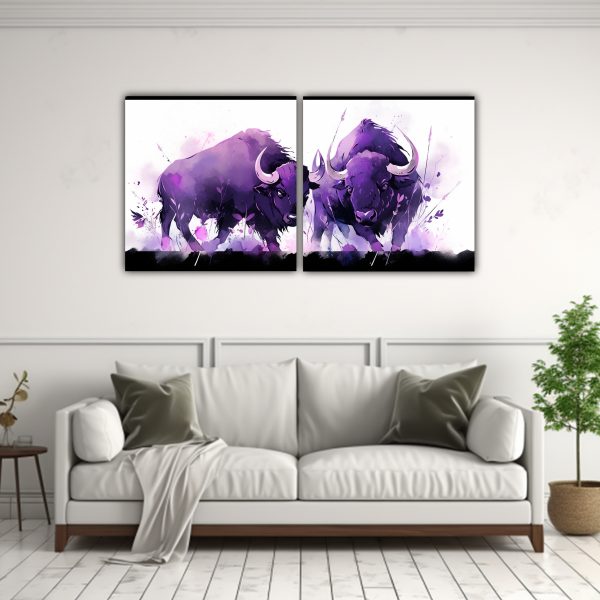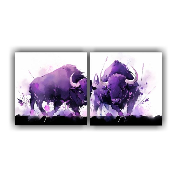 Pinturas Decorativas Bison Y Búfalo En Acuarelas Moradas