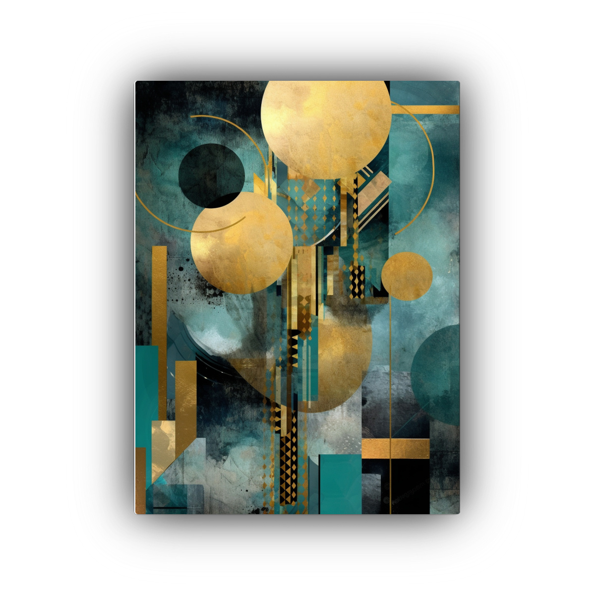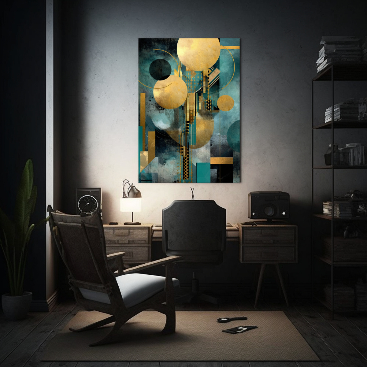 Pinturas Decorativas Canva Vanguardia Brillante Con Elementos Geométricos En Amarillo Y Azul
