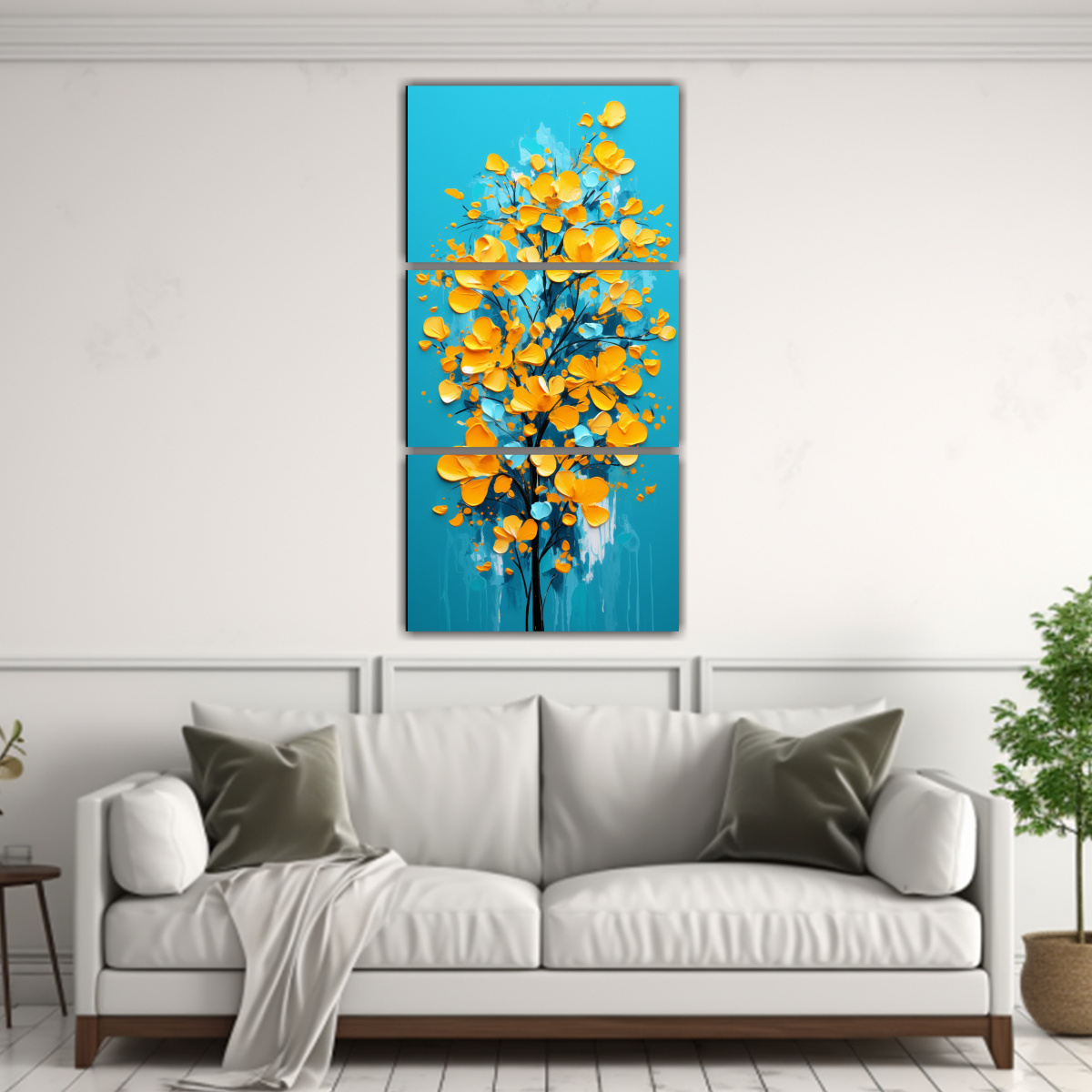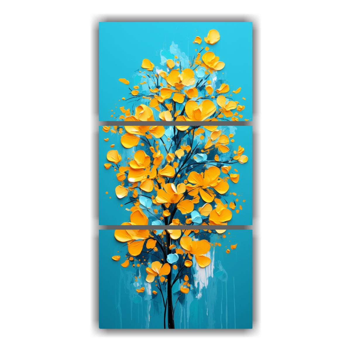 Pinturas Decorativas Clásicas: Árbol De Acacia En Amarillo Y Turquesa, Atmósfera Neonoir.