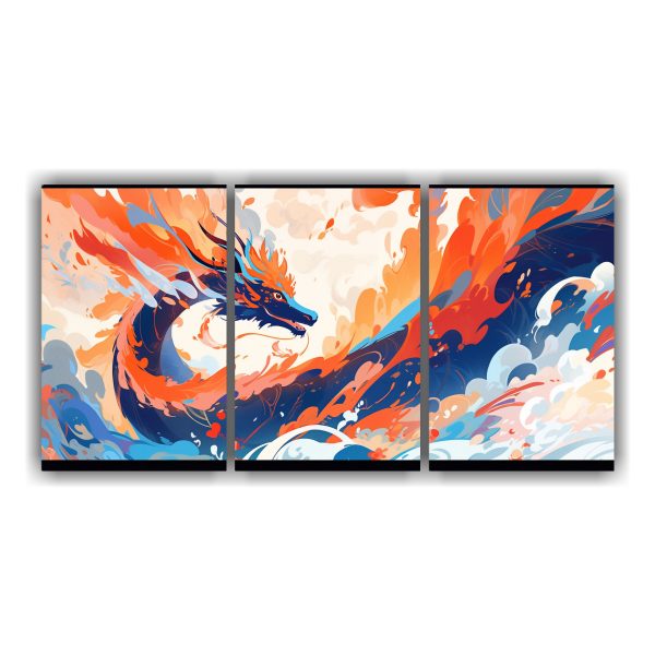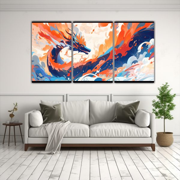 Pinturas Decorativas: Composición Llamativa De Dragón En Colores Naranja Y Azul