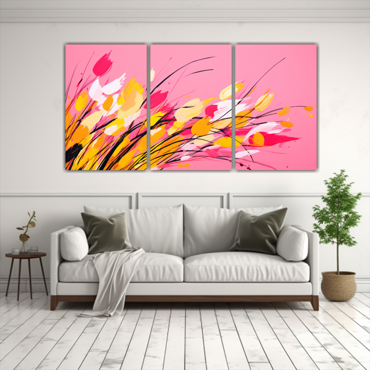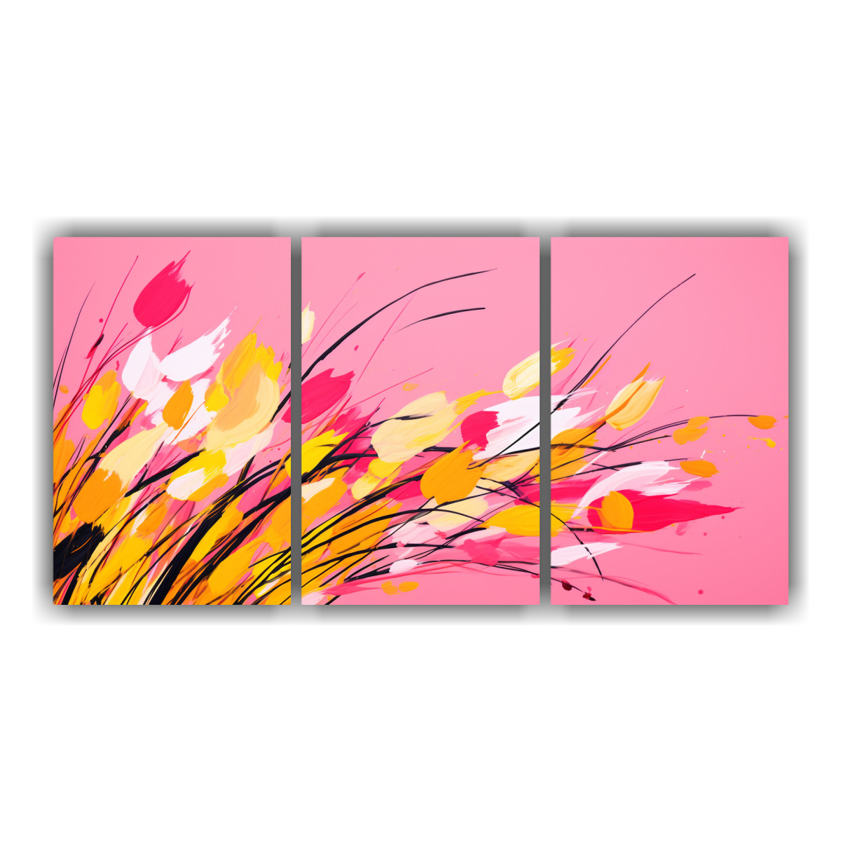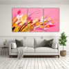Pinturas Decorativas Con Atmósfera Neonoir De Hierbas En Amarillo Y Rosa En Bastidor De Tres Telas