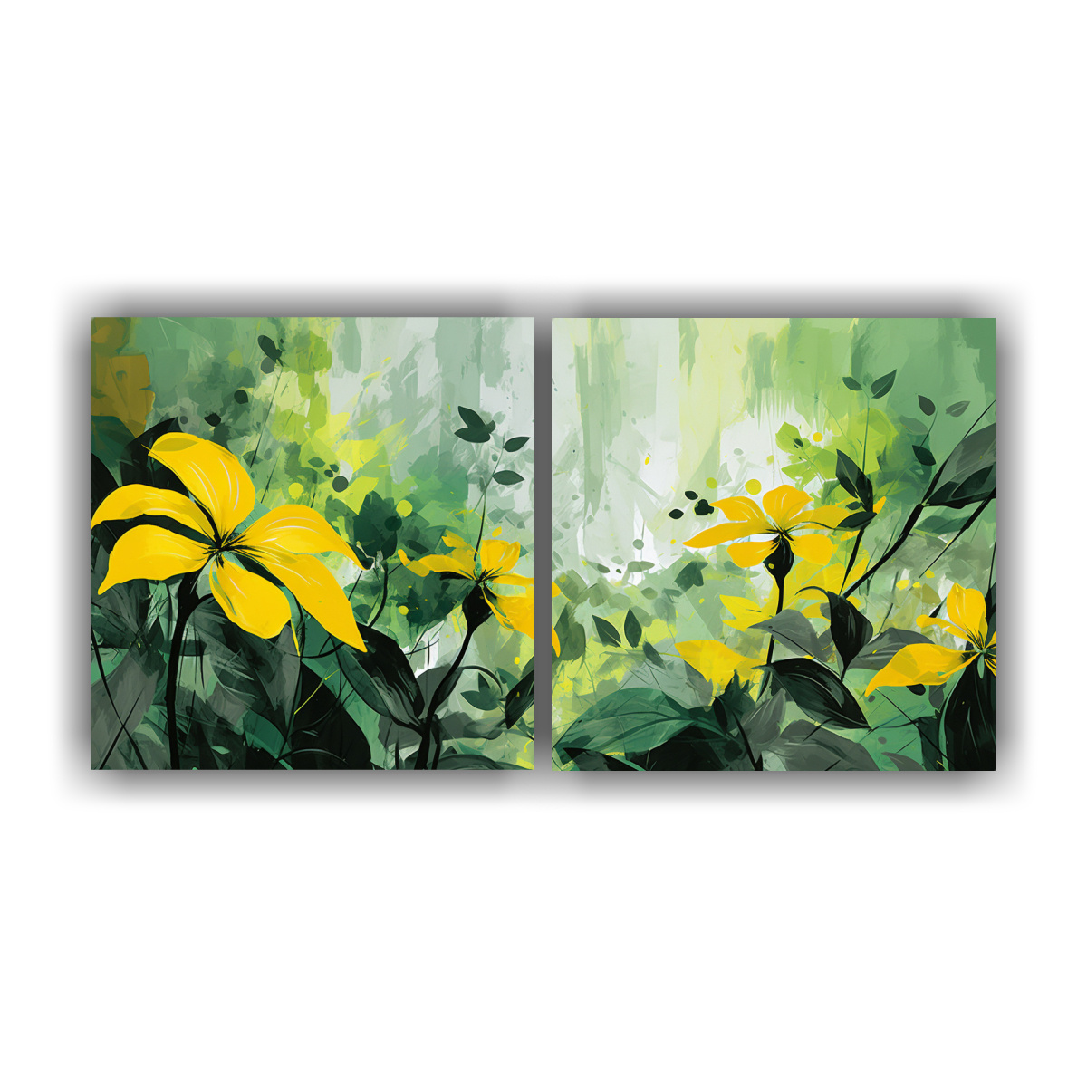 Pinturas Decorativas Con Detalles Amarillos Y Verdes En Estilo Neonoir