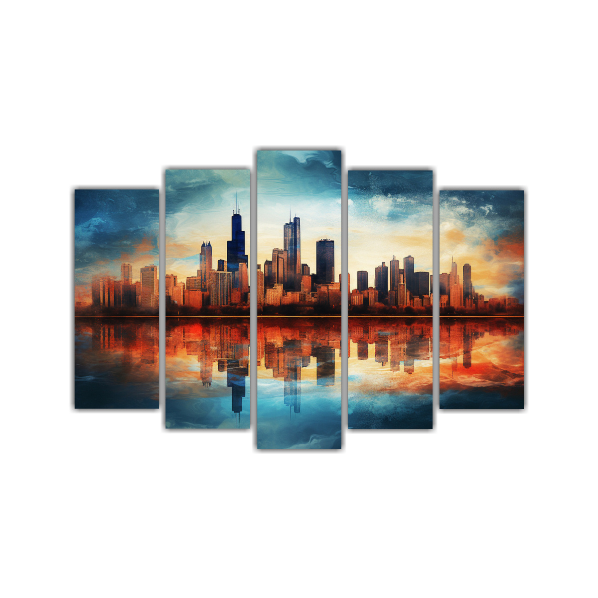 Pinturas Decorativas Con Finas Líneas Reflejando El Skyline De Chicago
