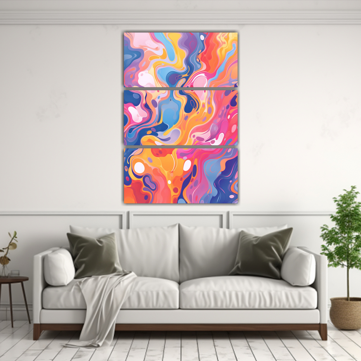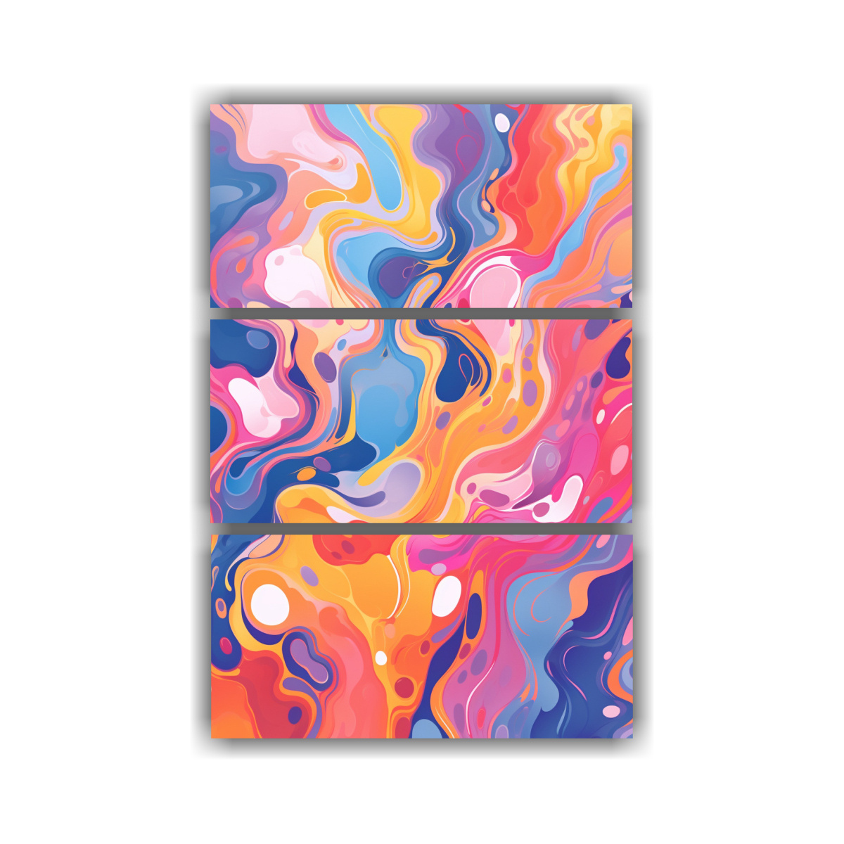 Pinturas Decorativas Con Forma Ambiental Y Fondo Psicodélico Usando Figuras Y Remolinos En Tonos Set 3.