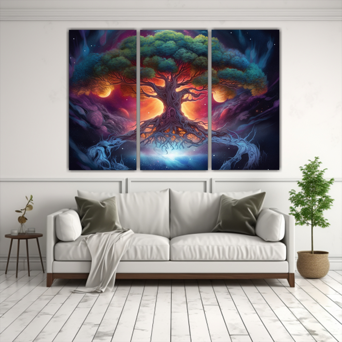 Este cuadro de Yggdrasil se vería espectacular en la sala de estar, creando un punto focal impactante Combínalo con muebles en tonos neutros para resaltar sus colores vibrantes y añadir un toque místico a tu espacio