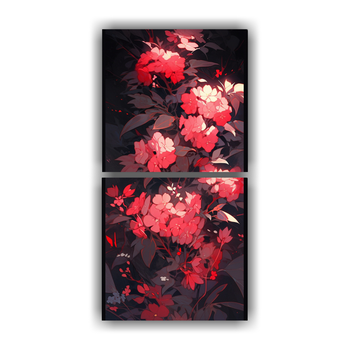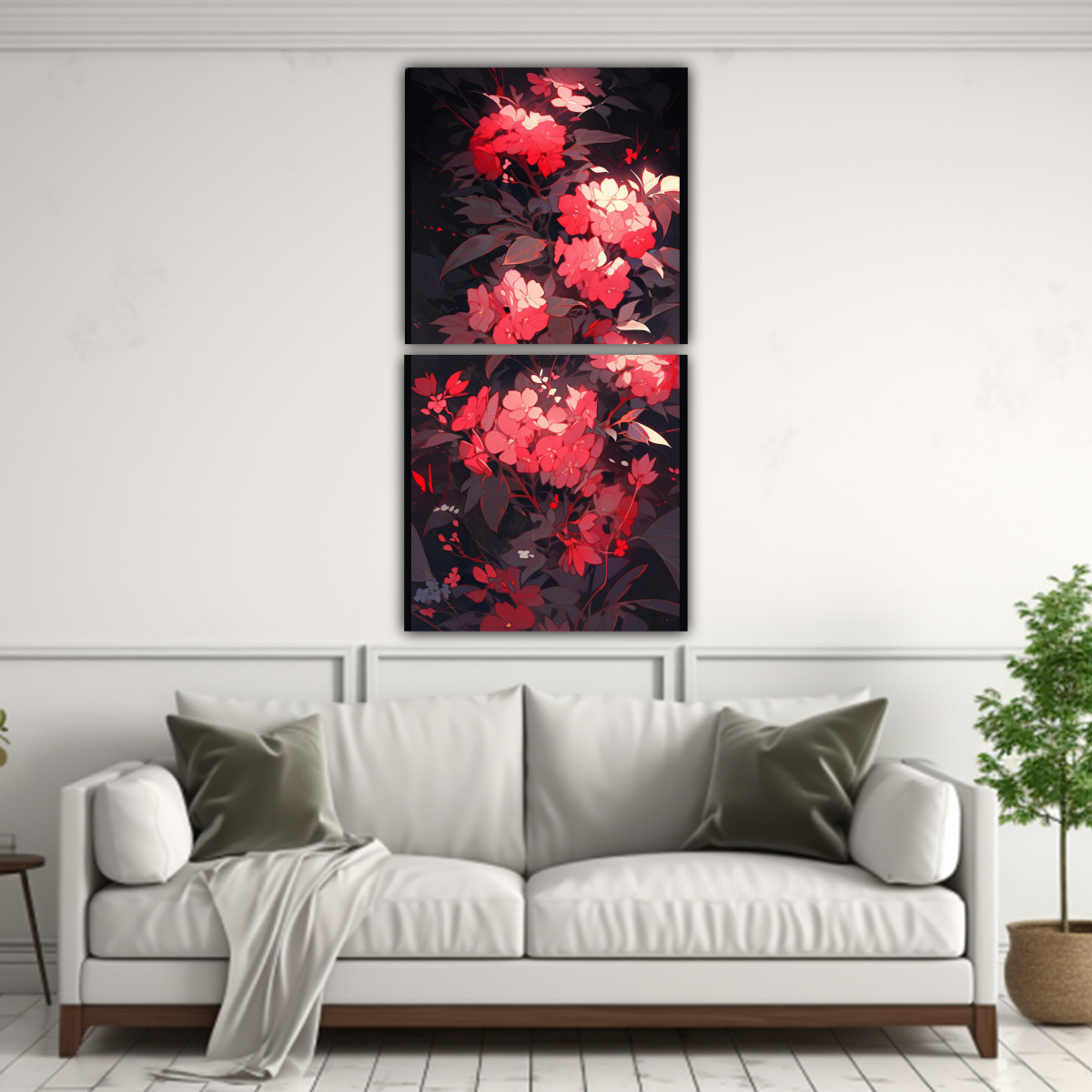 Pinturas Decorativas Con Inspiración Hermosa En Tela En Rojo Y Rosa, Atmósfera Neonoir, Al Estilo De Dos Lienzos.