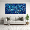 Este cuadro con patrón de círculo en tonos azules sería perfecto para decorar una sala de estar moderna Colócalo sobre un sofá blanco para crear un contraste elegante, y combínalo con cojines en tonos azules y grises para lograr una armonía en la decoración Además, puedes complementar con una alfombra gris claro y cortinas en tonos turquesa para agregar un toque de frescura ¡Transforma tu sala de estar en un espacio sofisticado con este cuadro de DecoCuadros!