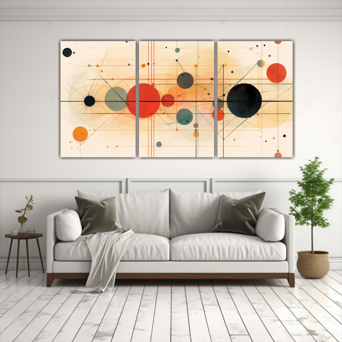 Este cuadro de círculos interconectados es ideal para decorar tu sala de estar Combínalo con muebles en tonos neutros y textiles en colores vibrantes como el coral o el amarillo claro para crear un ambiente moderno y lleno de energía