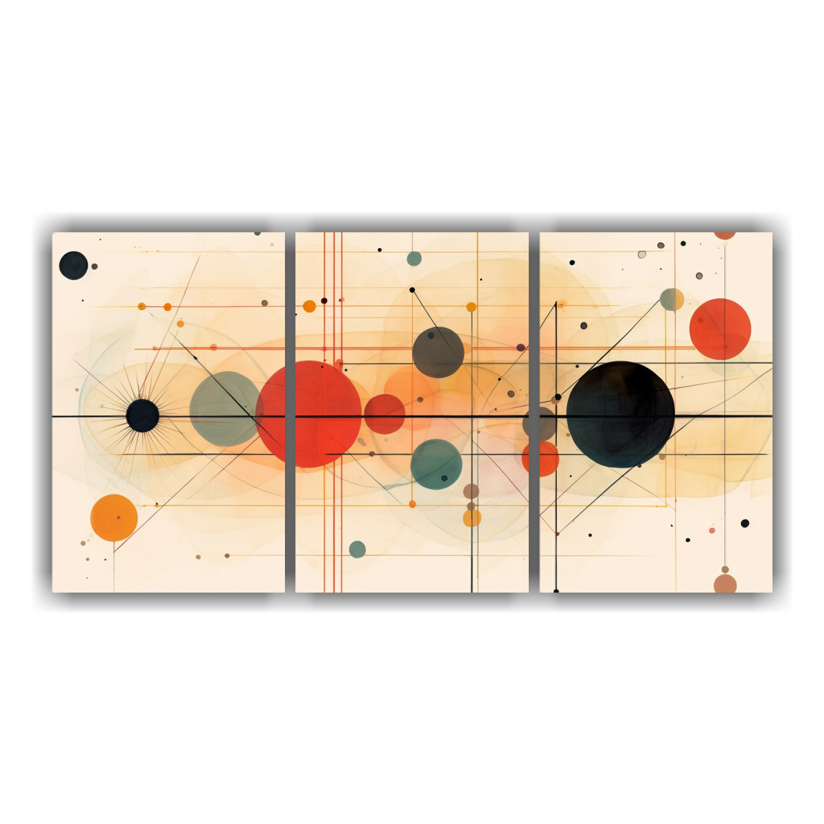 Pinturas Decorativas Con Patrón Intenso De Belleza De Tres Telas En Bastidor Con Círculos Interconectados