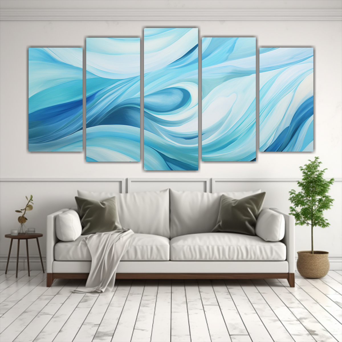 Pinturas Decorativas Con Patrones Abstractos En Azules Oceánicos Que Inspiran Sensibilidad Artística Set De 5 Telas En Bastidor.