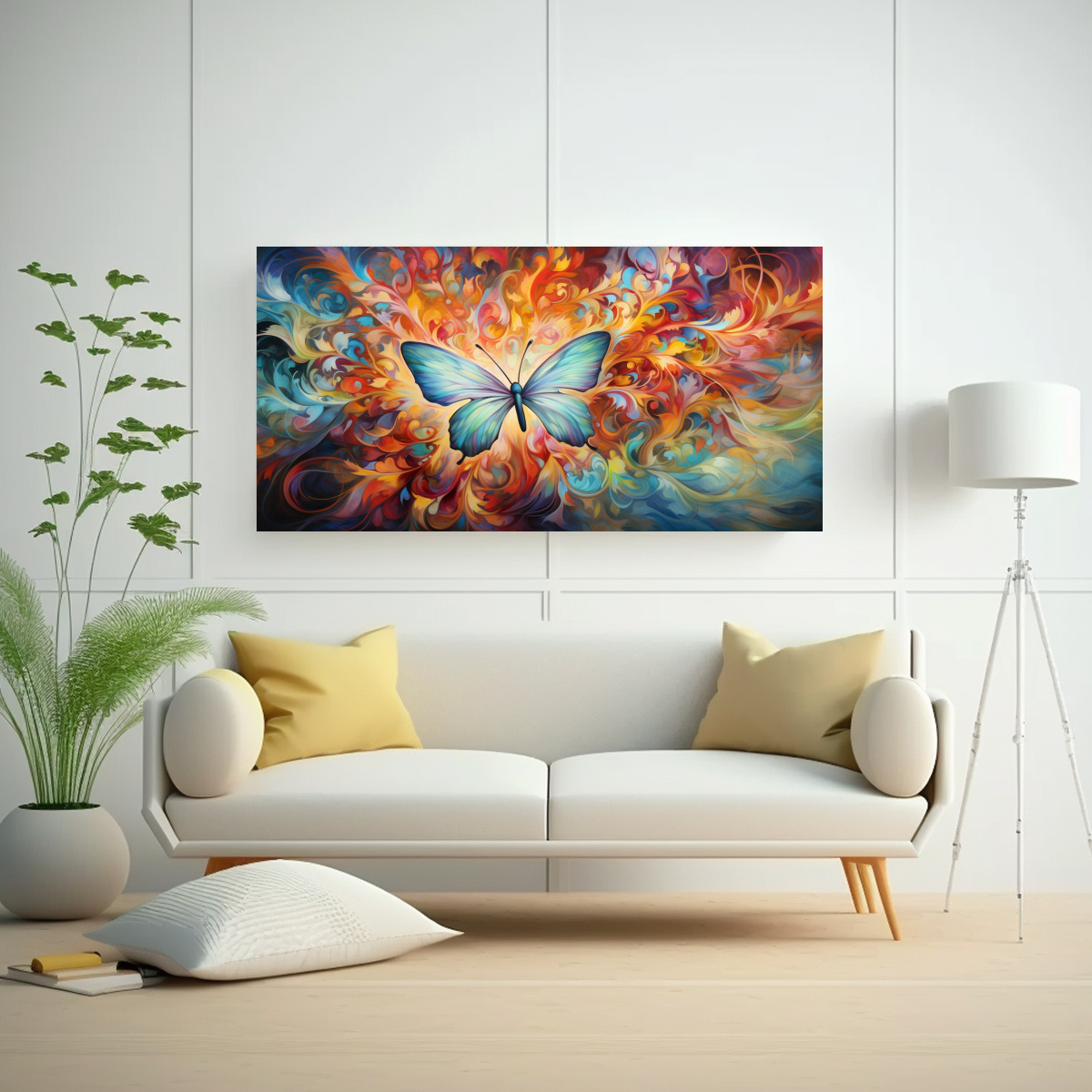 Este cuadro con patrones de alas de mariposa es perfecto para la sala de estar Puedes colocarlo sobre un sofá de tonos neutros para crear un contraste elegante, o combinarlo con muebles de colores vivos para agregar un toque de color También puedes colocarlo en el comedor, sobre una mesa de madera, para crear un ambiente cálido y acogedor ¡Deja volar tu imaginación y encuentra el lugar perfecto para este cuadro en tu hogar!