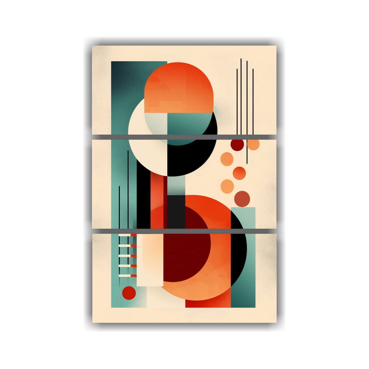 Este cuadro con patrones geométricos abstractos en colores carmesí, azul marino grisáceo, beige, coral, gris, turquesa, menta y rosado claro es perfecto para decorar una sala de estar o un estudio Combínalo con muebles en tonos neutros para crear una atmósfera moderna y sofisticada