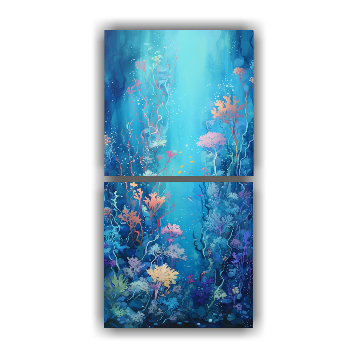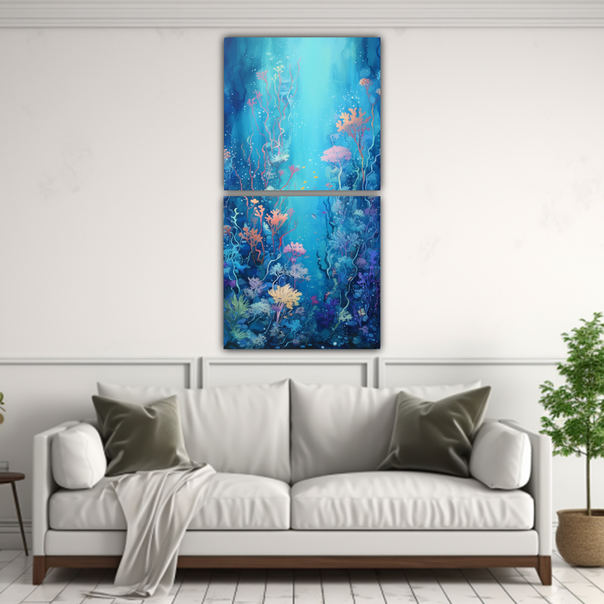 Pinturas Decorativas Con Representación Abstracta Equilibrada De Un Mundo Submarino En La Composición Inspiradora De Un Conjunto De 2