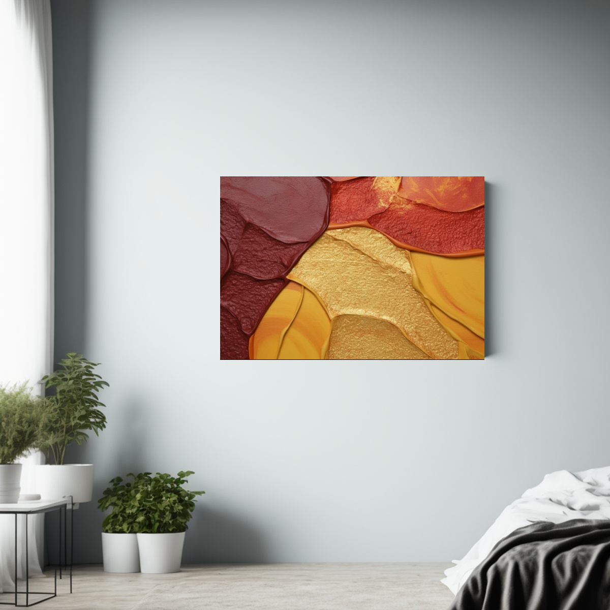 Este cuadro quedaría perfecto en tu sala de estar, sobre un sofá de tonos neutros para resaltar la combinación de colores También es ideal para dar vida a un rincón de lectura junto a una lámpara dorada y cojines en tonos tierra