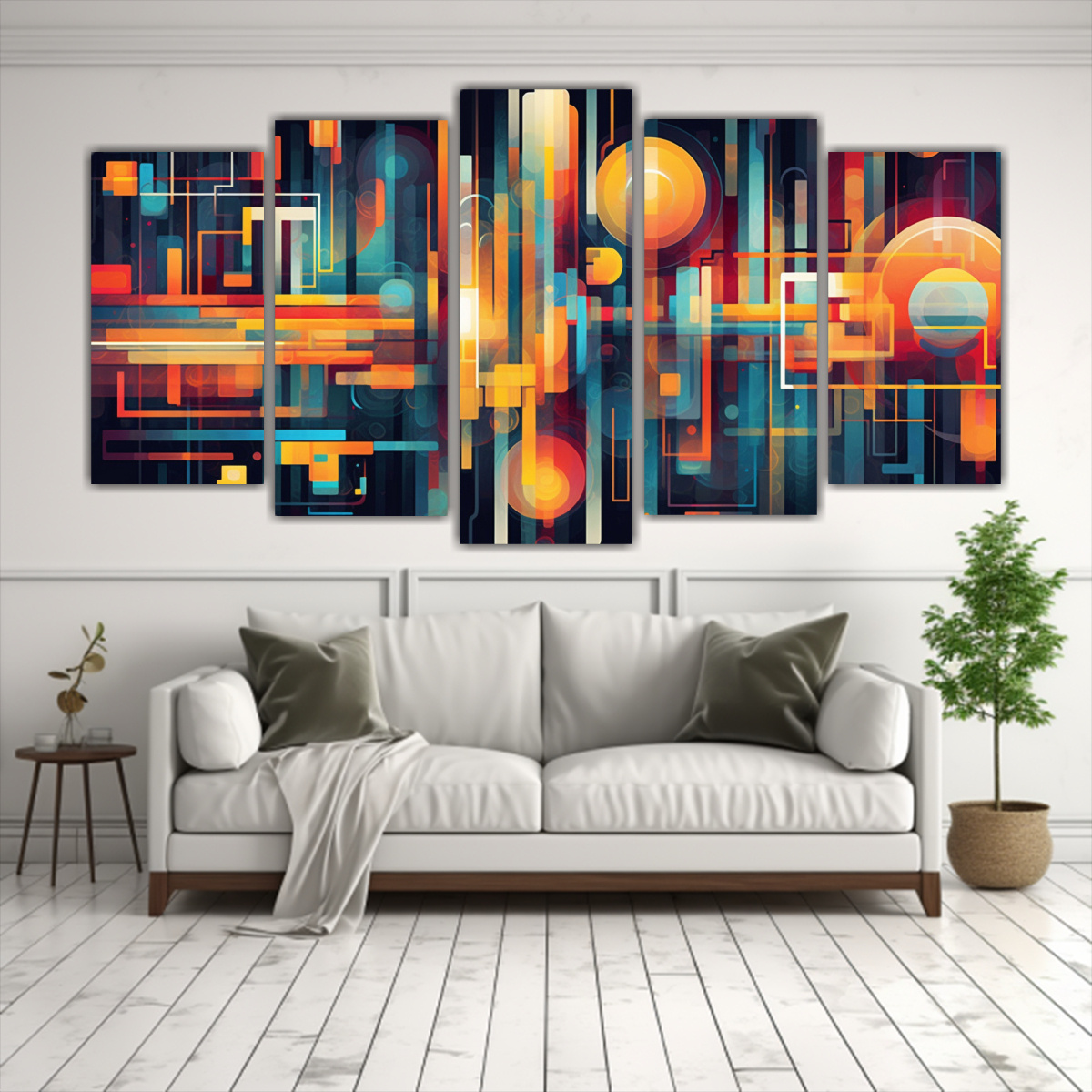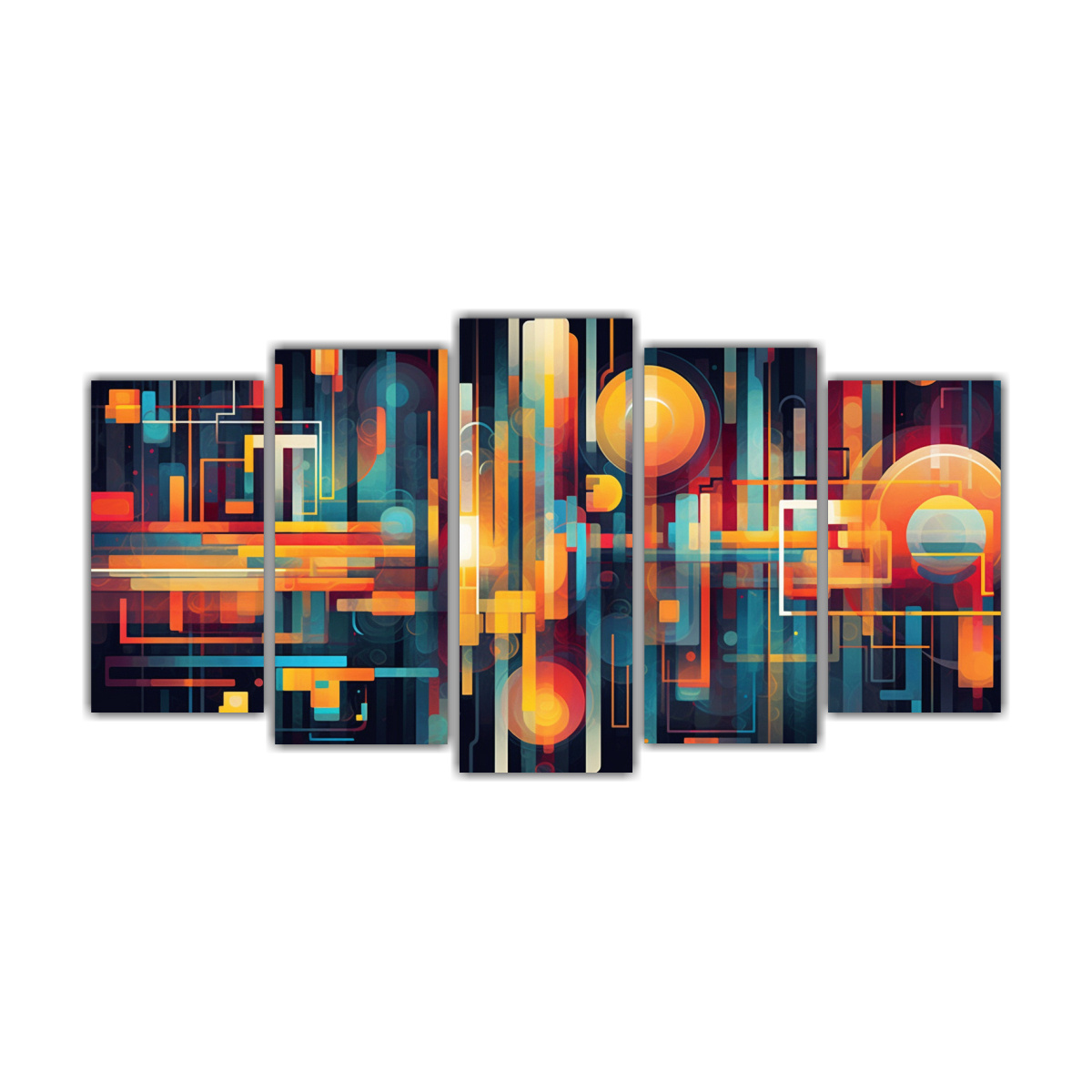 Pinturas Decorativas Con Temática De Textura En Bastidor De 5 Telas: Adéntrate En El Cautivador Mundo Del Retro Futurismo