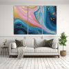 Agrega un toque de elegancia a tu comedor con este set de 3 canvas que combina los tonos lila, turquesa y gris creando un ambiente moderno y sofisticado Colócalo sobre un muro gris oscuro para resaltar los colores y crear un contraste llamativo que captará la atención de tus invitados