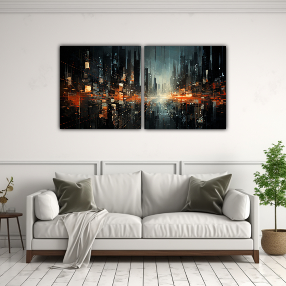 Pinturas Decorativas Creativas Con Toque Futurista De Paisajes Urbanos Abstractos Y Florales