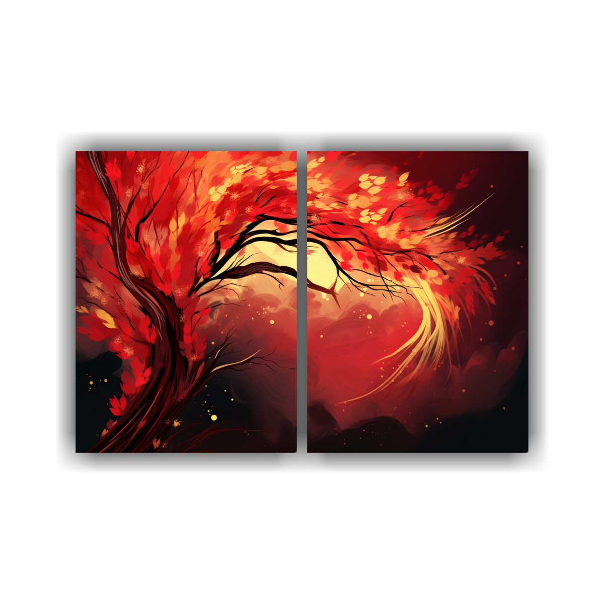 Sumérgete en una atmósfera neo-noir con los dos cuadros patrón intensos de Árbol de Sauce en Rojo y Oro En DecoCuadros, tenemos diseños exclusivos impresos en tela de alta calidad, con entregas rápidas y gratuitas en Santiago