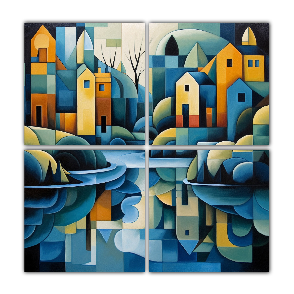 Pinturas Decorativas Cubismo Río Combinación Conceptual