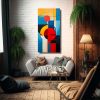 Este cuadro de abstracción geométrica simétrica con colores primarios audaces es perfecto para darle vida a tu sala de estar Combínalo con muebles en tonos neutros para lograr un contraste moderno y elegante