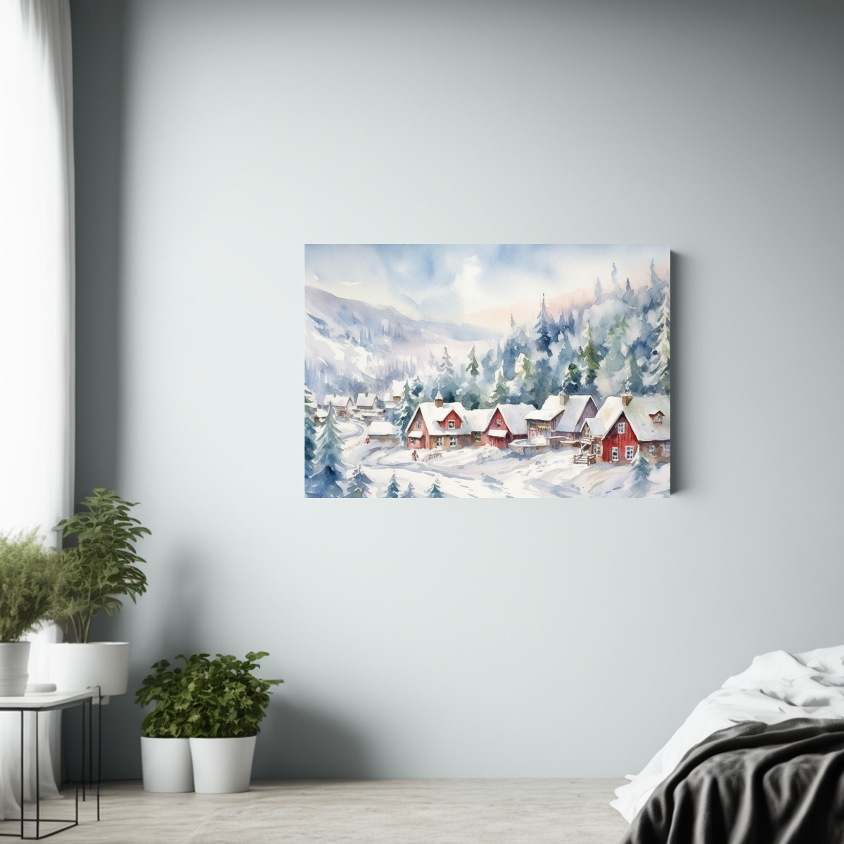 Pinturas Decorativas De Aldea De Santa Claus En Polo Norte Con Simetría Acuarela