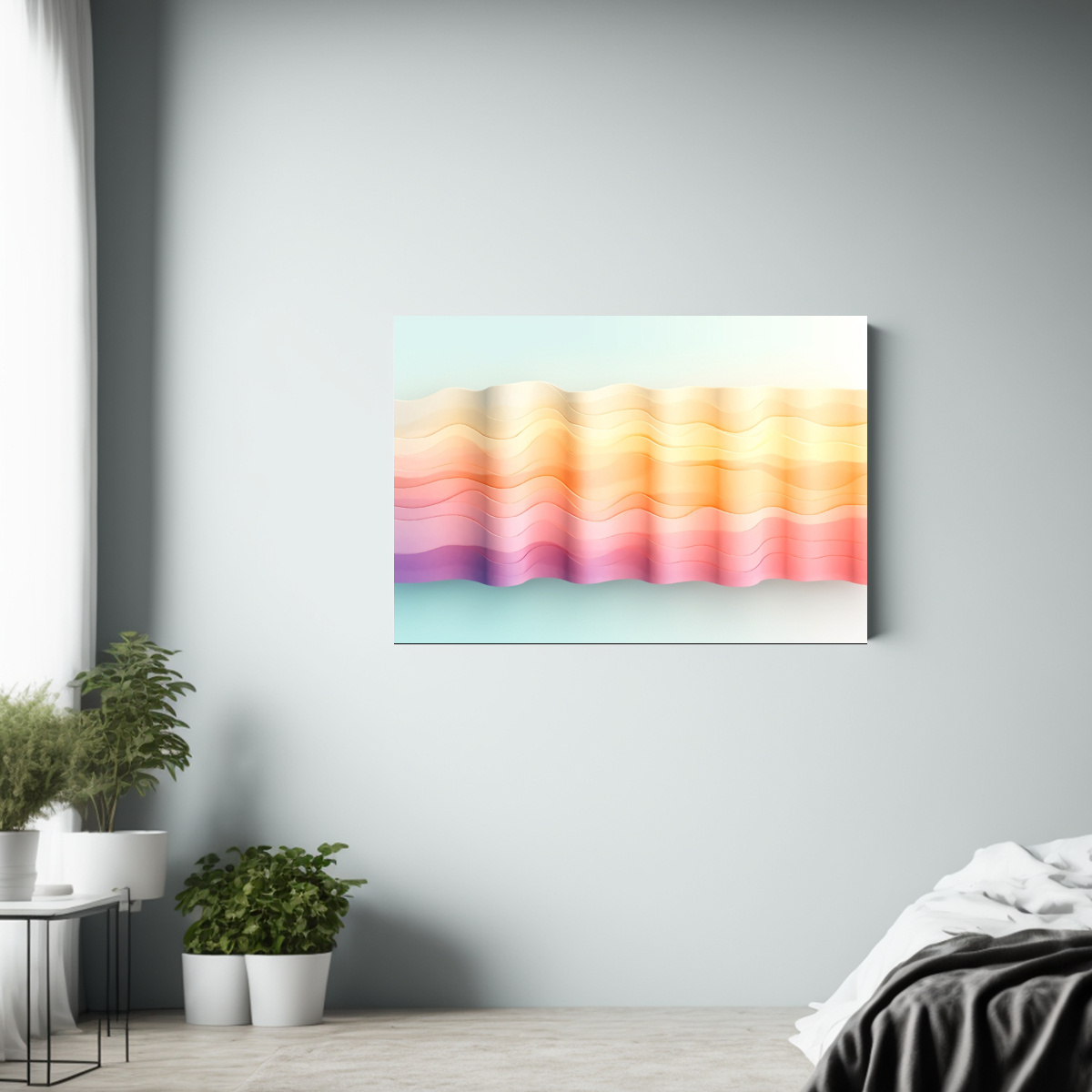 Este cuadro de delicado gradiente de acuarela en tonos suaves es ideal para decorar salas de estar o dormitorios, combinando perfectamente con muebles en tonos neutros o blancos Colócalo en un punto focal para darle a la habitación un toque de elegancia y tranquilidad