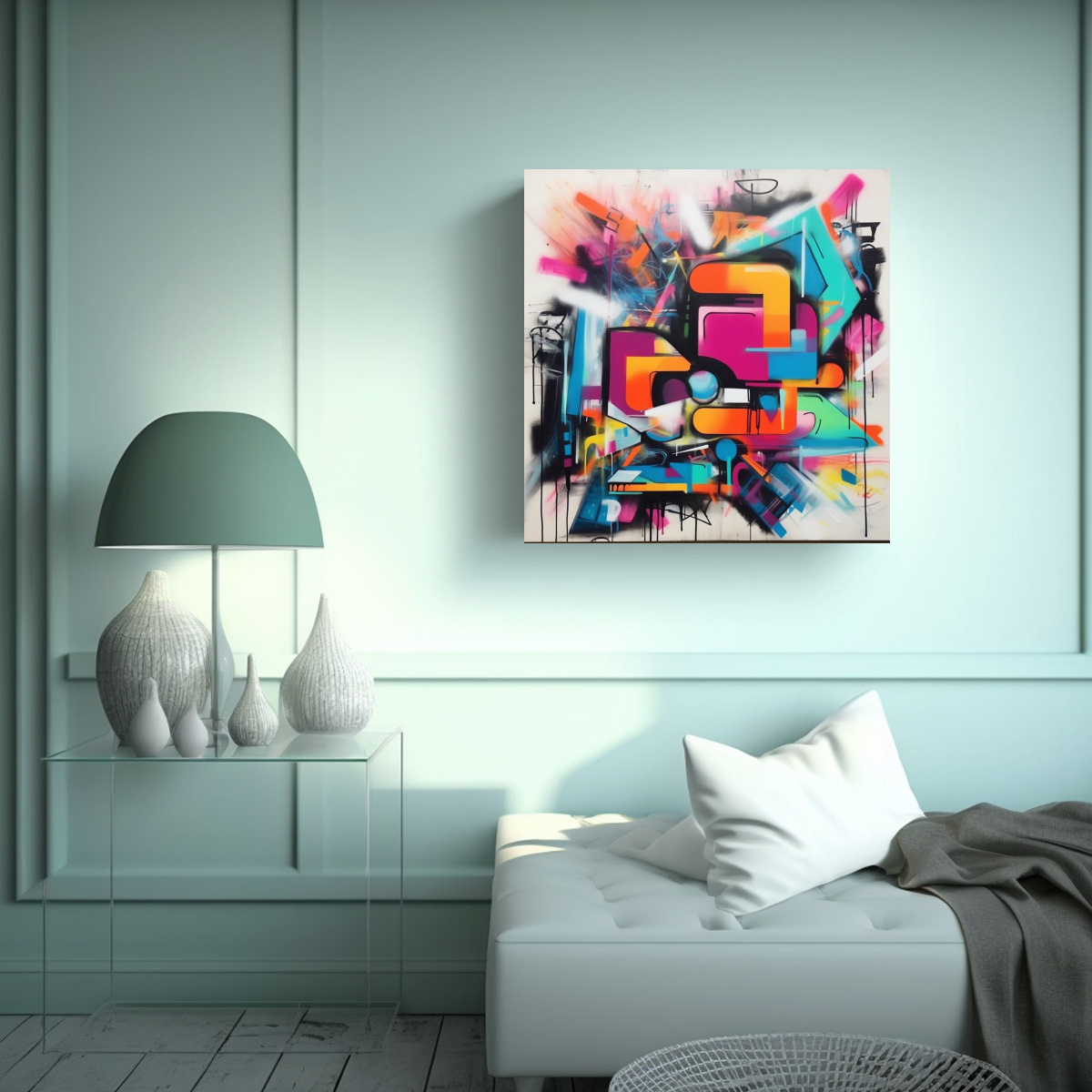 Este cuadro con graffitis y trazos en alta resolución es perfecto para decorar cualquier espacio moderno y urbano Puedes colocarlo en el salón principal de tu hogar, en el área de entretenimiento o incluso en tu oficina Combínalo con muebles en tonos neutros y accesorios en colores llamativos para crear un ambiente lleno de estilo y personalidad ¡Atrévete a darle un toque artístico a tus espacios con este cuadro de DecoCuadros!