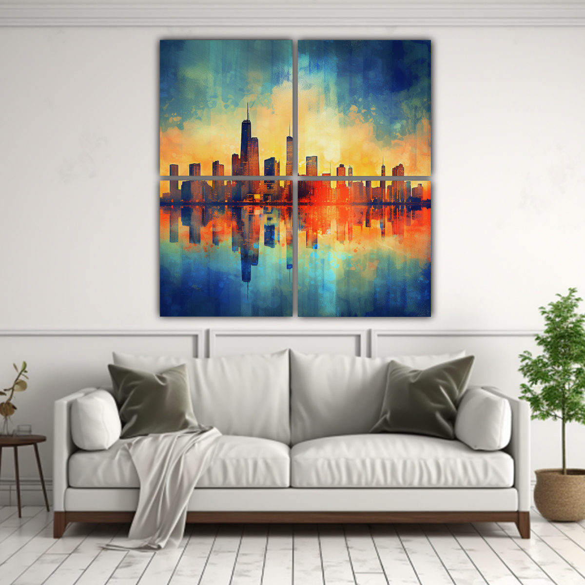 Decora tu hogar u oficina con nuestros cuadros decorativos de ambiente retro estilo skyline abstracto ultra HD en colores como Azul Marino grisaceo, Coral, Turquesa, Gris, Carmesí y Beige Nuestros cuadros están impresos en tela de alta calidad con bastidores de madera, ofreciendo durabilidad y estilo para tus espacios