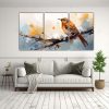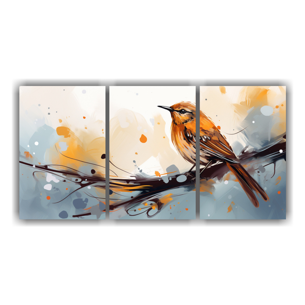 Pinturas Decorativas De Armonía En Tres Lienzos: Zorzal En Tonos Marrón Y Naranja