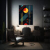 Este cuadro abstracto estilo geométrico en contraste sería perfecto para decorar una sala de estar moderna Combínalo con muebles en tonos neutros como blanco, gris o beige para resaltar su diseño exclusivo Colócalo sobre un sofá o en una pared vacía para crear un punto focal visualmente impactante