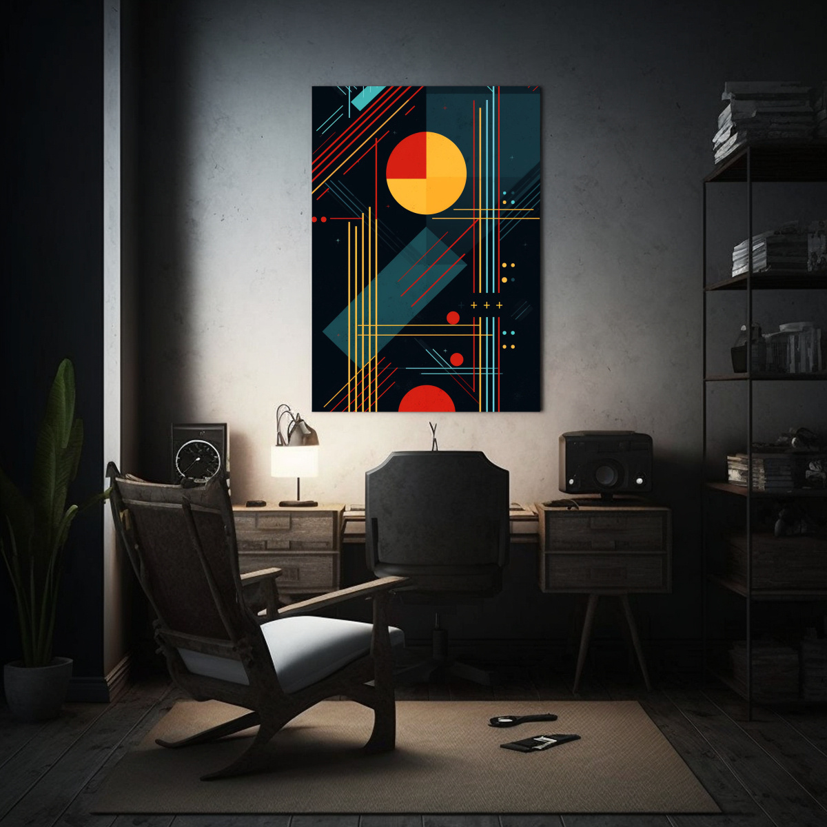 Decora tus espacios con el cuadro abstracto estilo geométrico en contraste de DecoCuadros Con colores dorado, negro, carmesí, turquesa, azul marino grisáceo, chocolate, aguamarina y menta, crea un ambiente moderno y sofisticado Calidad y precios económicos, envío gratis en Santiago y rápidos a regiones