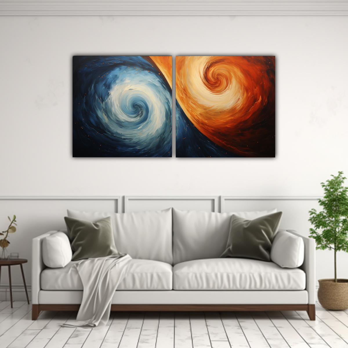 Este cuadro de arte abstracto y cosmología del yin y yang en estilo Estilo óleo por Carolina puede ser colocado en la sala de estar para crear un ambiente relajante y sofisticado Combina perfectamente con muebles de colores neutros como beige o blanco, y puedes agregar cojines en tonos turquesa o gris para lograr una armonía visual También puedes colocarlo en un estudio o espacio de trabajo para inspirarte y estimular tu creatividad ¡Deja que este cuadro sea el centro de atención en tu espacio y disfruta de su belleza y significado!