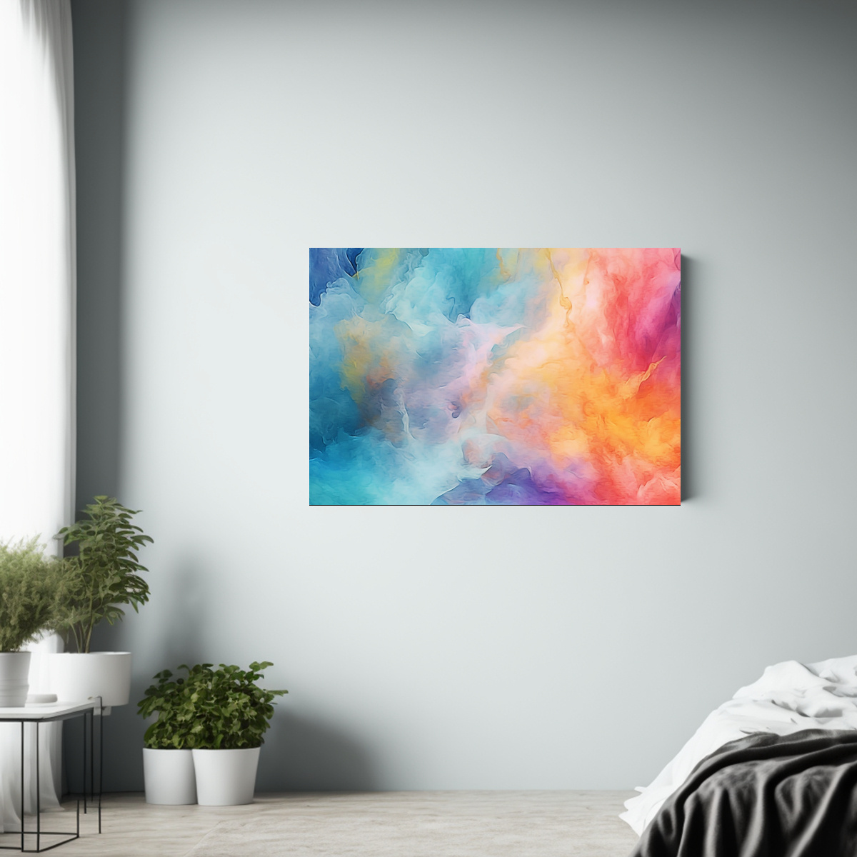 Coloca este cuadro en tu sala de estar para darle un toque moderno y sofisticado Combina los colores verde azulado, coral y turquesa con muebles en tonos neutros para crear un ambiente armonioso y lleno de estilo ¡Atrévete a destacar tu pared con esta obra de arte!