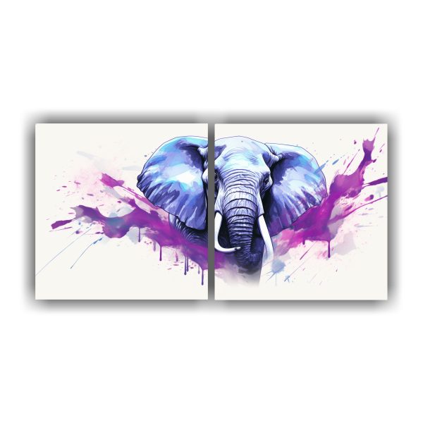 Pinturas Decorativas De Arte Gráfico Inspirado En Elefante Africano En Colores Púrpura Y Azul