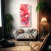 Este cuadro sería perfecto para decorar una sala de estar moderna Combina los colores rojo y rosa con tonos neutros como el beige y el gris para crear una atmósfera sofisticada Colócalo sobre un sofá gris claro y complementa con cojines en tonos coral y plateado ¡Crearás un espacio elegante y lleno de estilo!