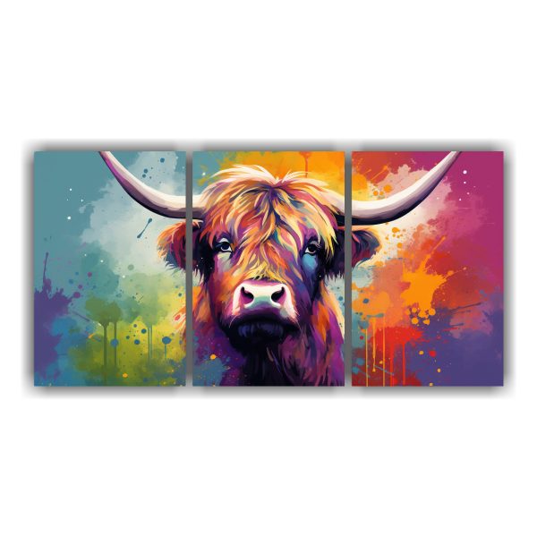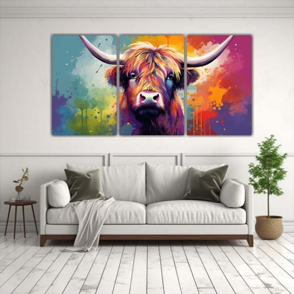 Pinturas Decorativas De Arte Pop Neo De Vaca De Montaña En Colores Arcoíris Y Blanco