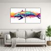 Pinturas Decorativas De Ballena Gris En Colores Arcoíris Y Rojo, Arte Pop Neo.